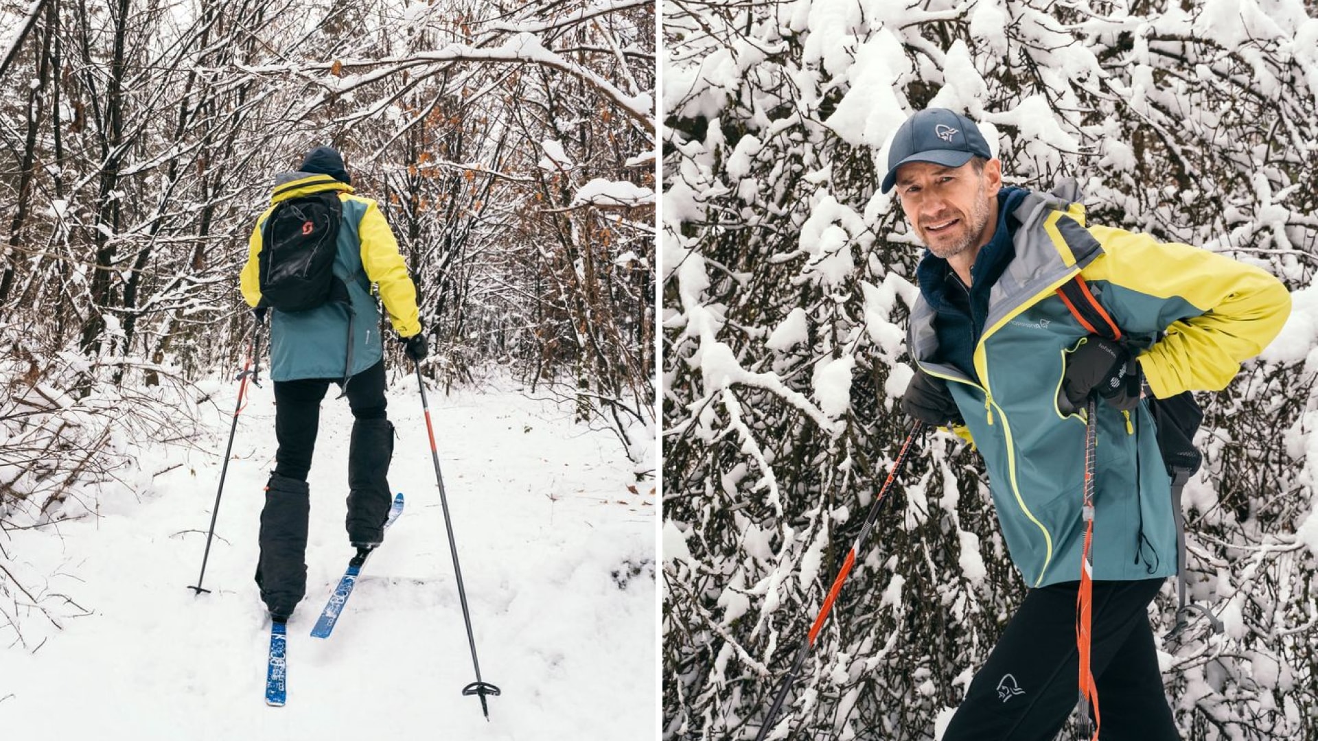 Sebastian Copeland 无论天气和季节如何,都会在森林中训练数小时。瞧,此刻他正穿着越野滑雪板在雪地里奋力前行。