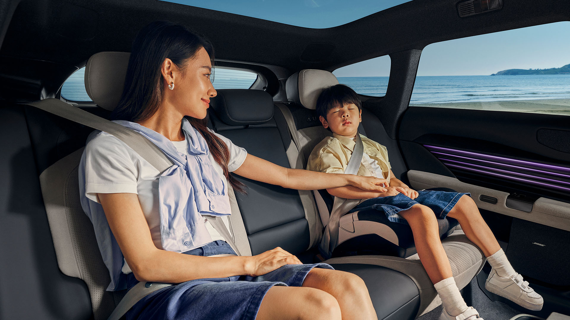 保护系统覆盖全车每一个座位,后排外侧乘员配备连贯侧面头部保护,周全守护后排父母与孩子。