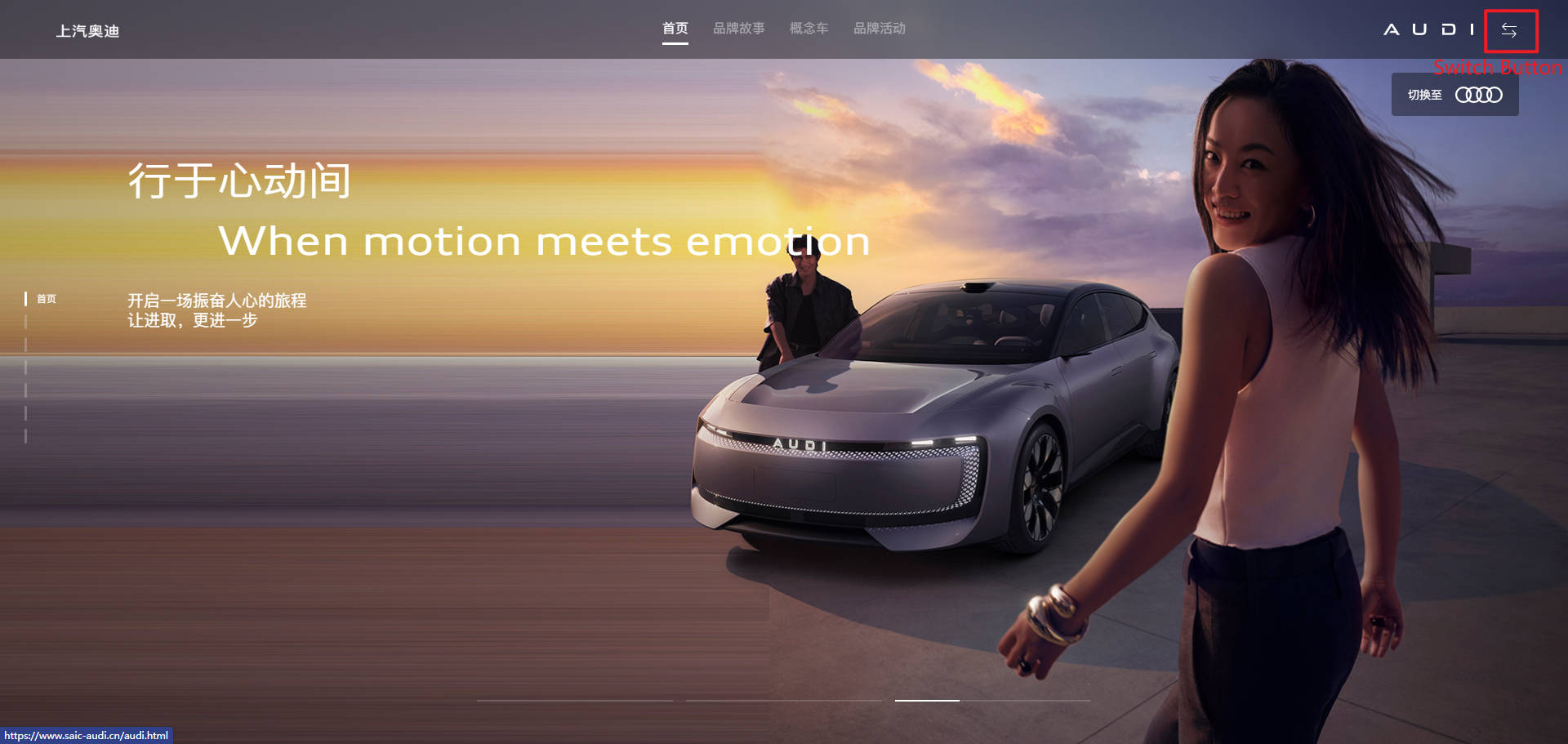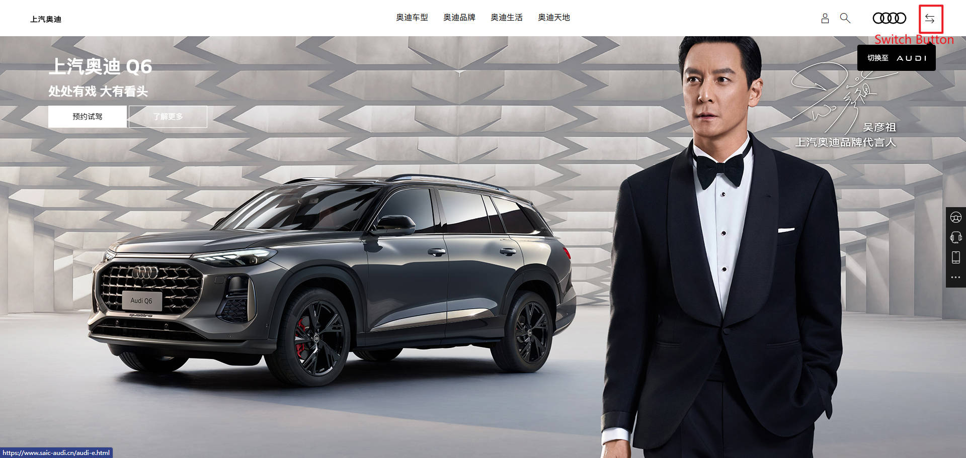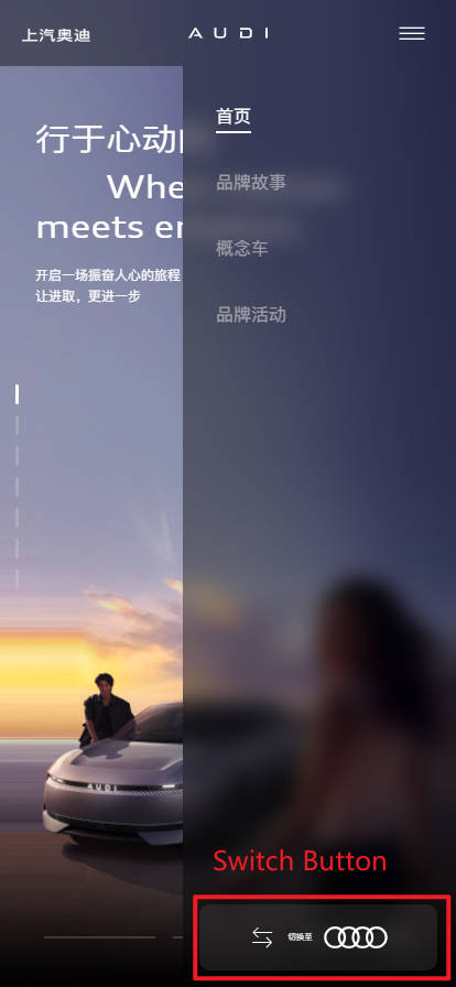 2. After the author fills in the Switch Address on two sites, a Switch Button will appear in the top right corner of the header. Clicking it allows switching between the two sites.