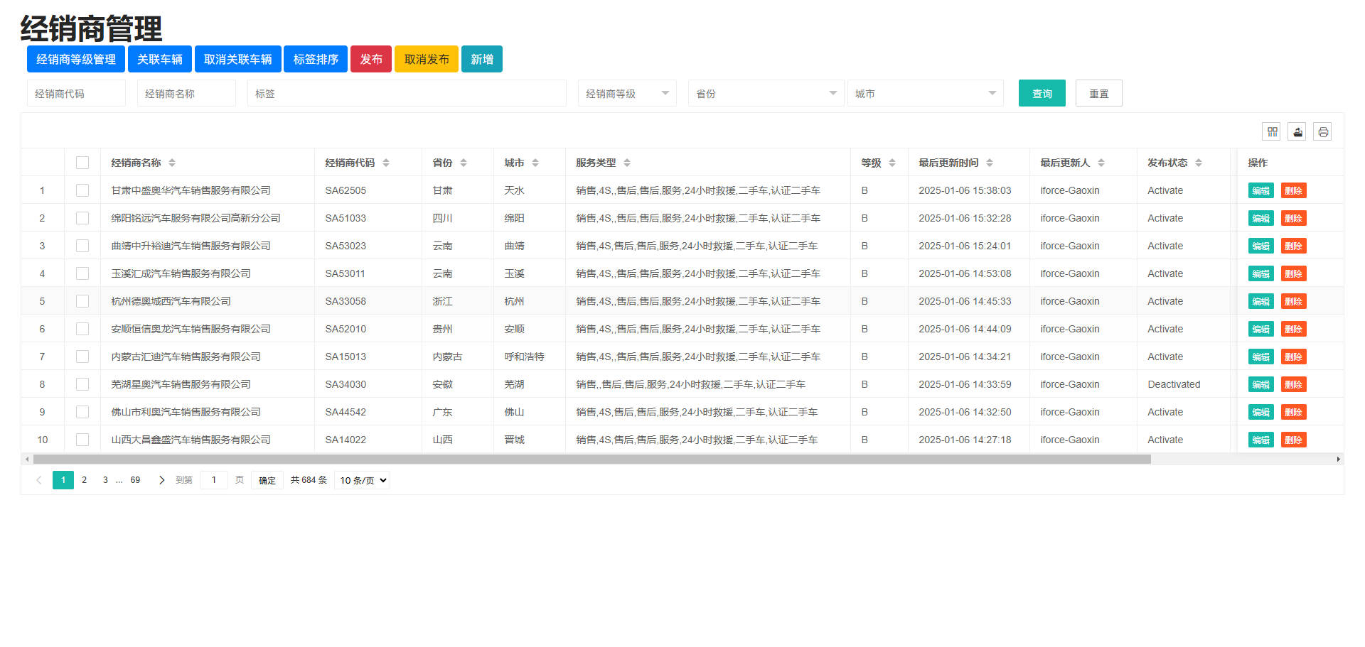 2. Authors can quickly search dealers using dealer code, dealer name, tags, dealer level, and province/city.