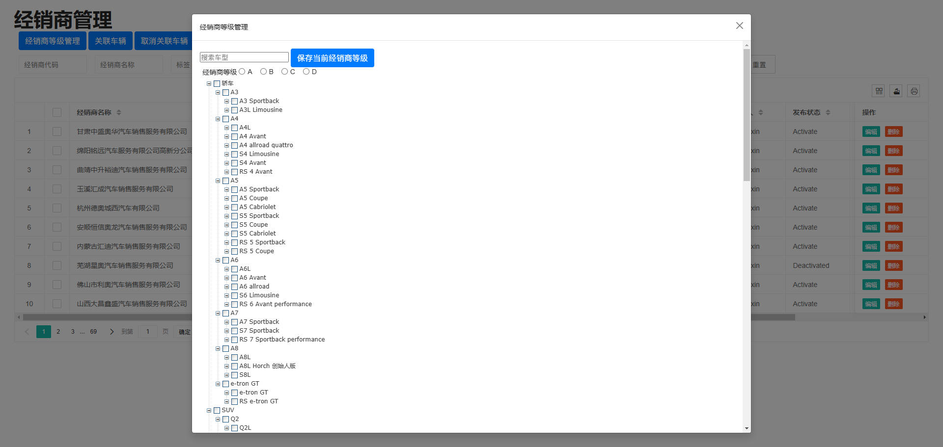 3. Authors can manage dealer levels and set the vehicles sold by dealers at each level.