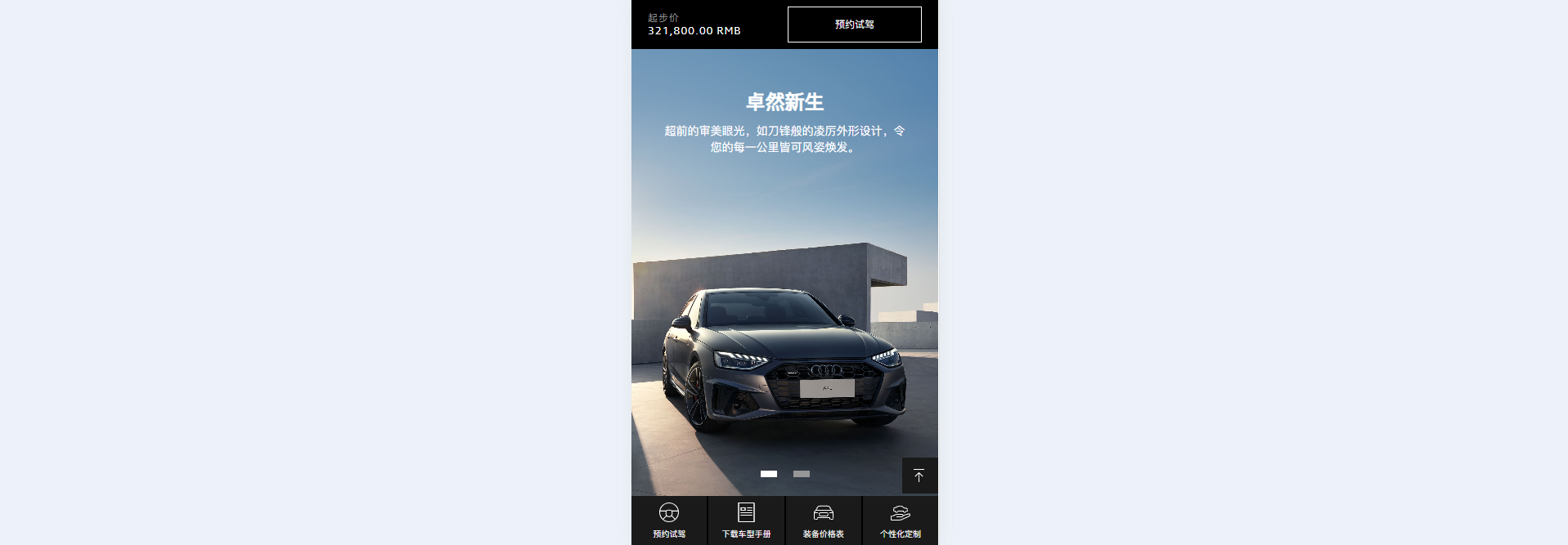①.Default: Displays when the first screen appears; hides as a small icon when the user scrolls or clicks on a blank area of the screen.